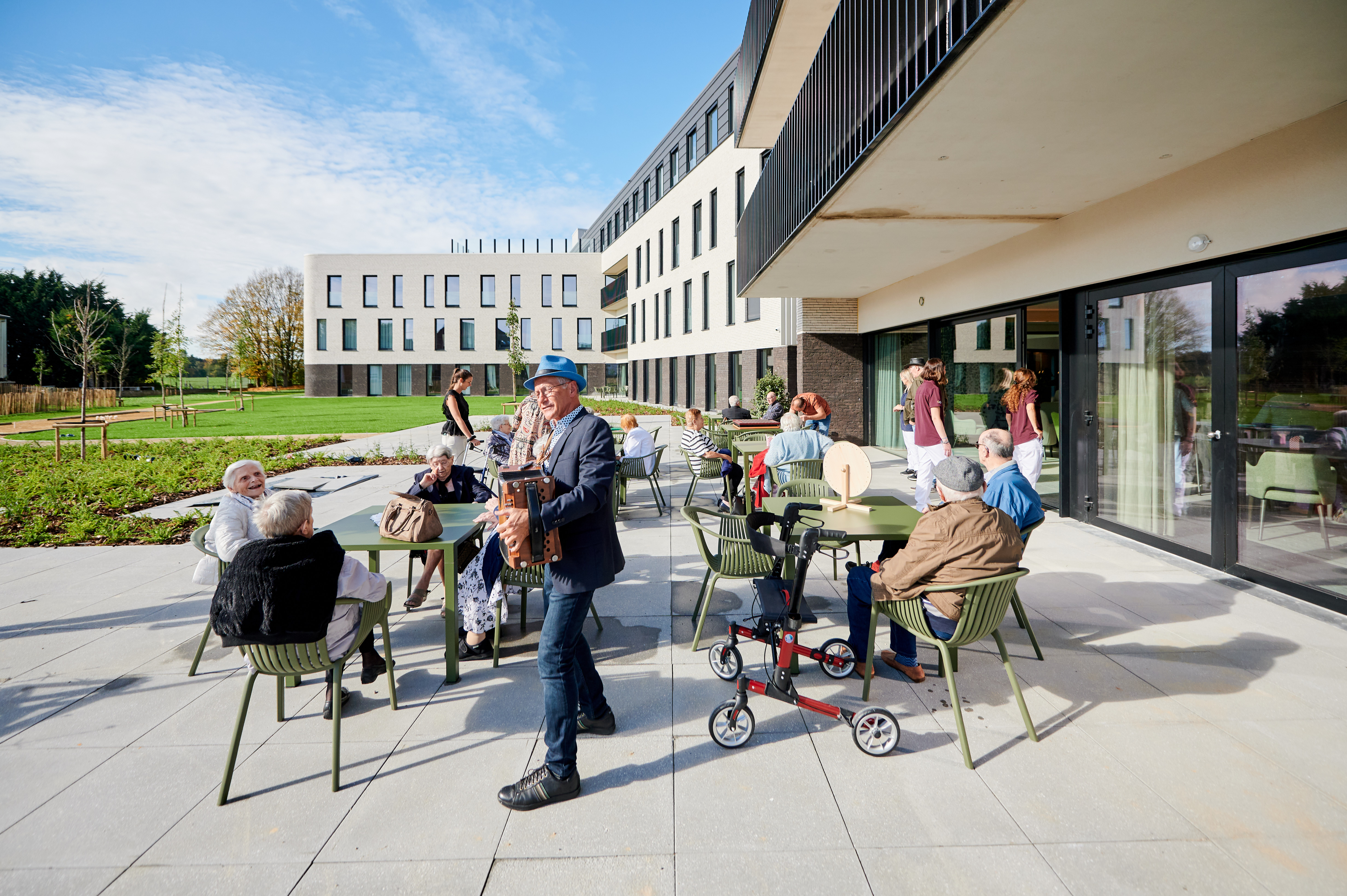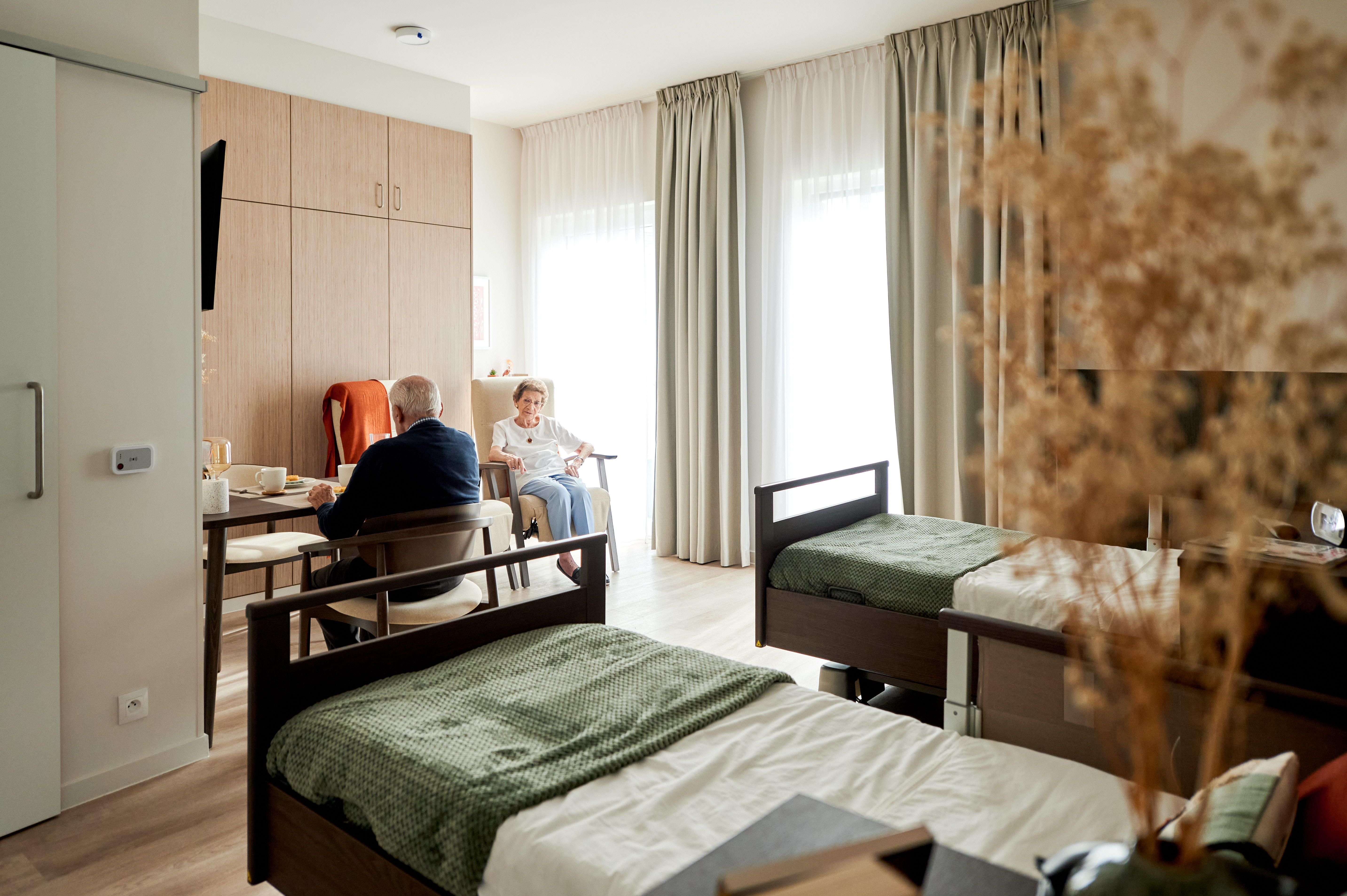 De bewoners genieten van ruime, lichtrijke kamers met prachtig uitzicht op het omringende groen. Het woonzorgcentrum beschikt over uitgebreide gemeenschappelijke ruimtes, waaronder een groot restaurant waar dagelijks verse maaltijden worden bereid, een gezellige bar, een familiesalon en een polyvalente zaal voor activiteiten en bezoek.